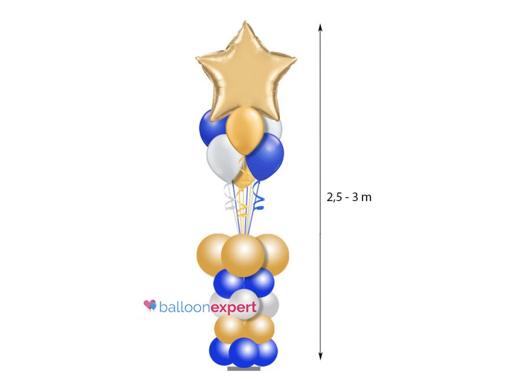 Balónkový sloup s rozšířeným vrchem, zakončený heliovou kyticí latexových balónků a fóliové hvězdy - výška max 3 m - v barvách dle vašeho výběru.