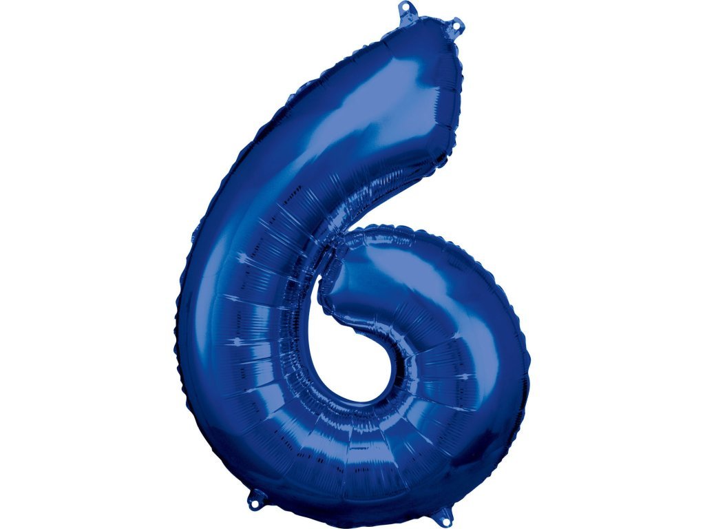Fóliový balón ve tvaru číslice 6, vhodný pro nafukování vzduchem nebo heliem.