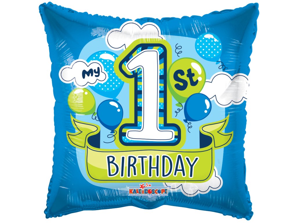 Fóliový balónek ve tvaru polštáře pro oslavu 1. narozenin.