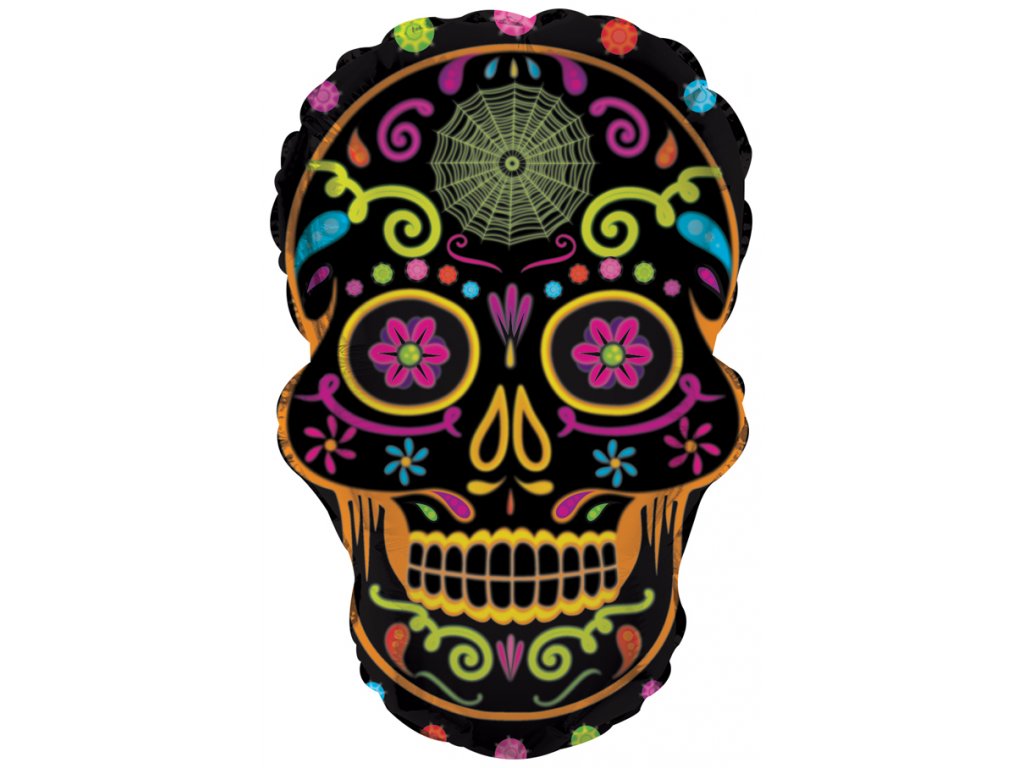 Fóliový balón ve tvaru lebky pro oslavu Dne mrtvých nebo Halloween.