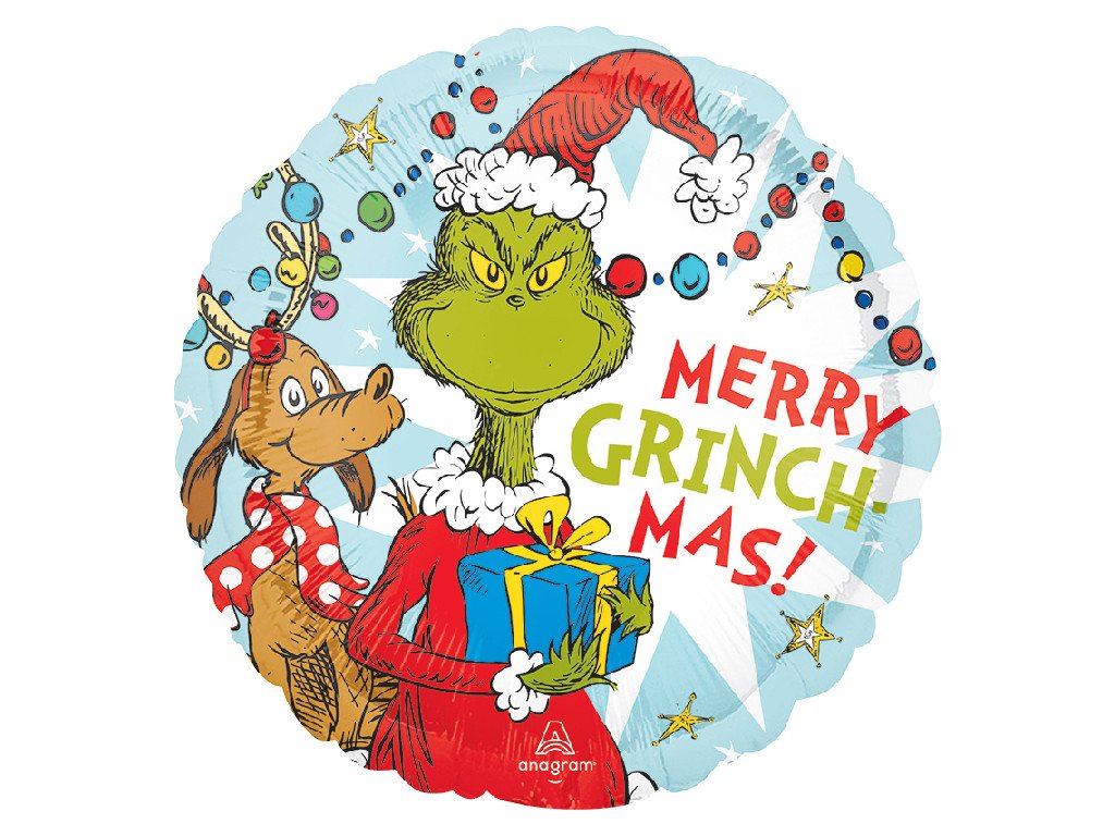 Kulatý fóliový balónek s ikonickou postavou z filmu Whoville se svátečním poselstvím dodá vaší vánoční výzdobě zábavný a drzý nádech.