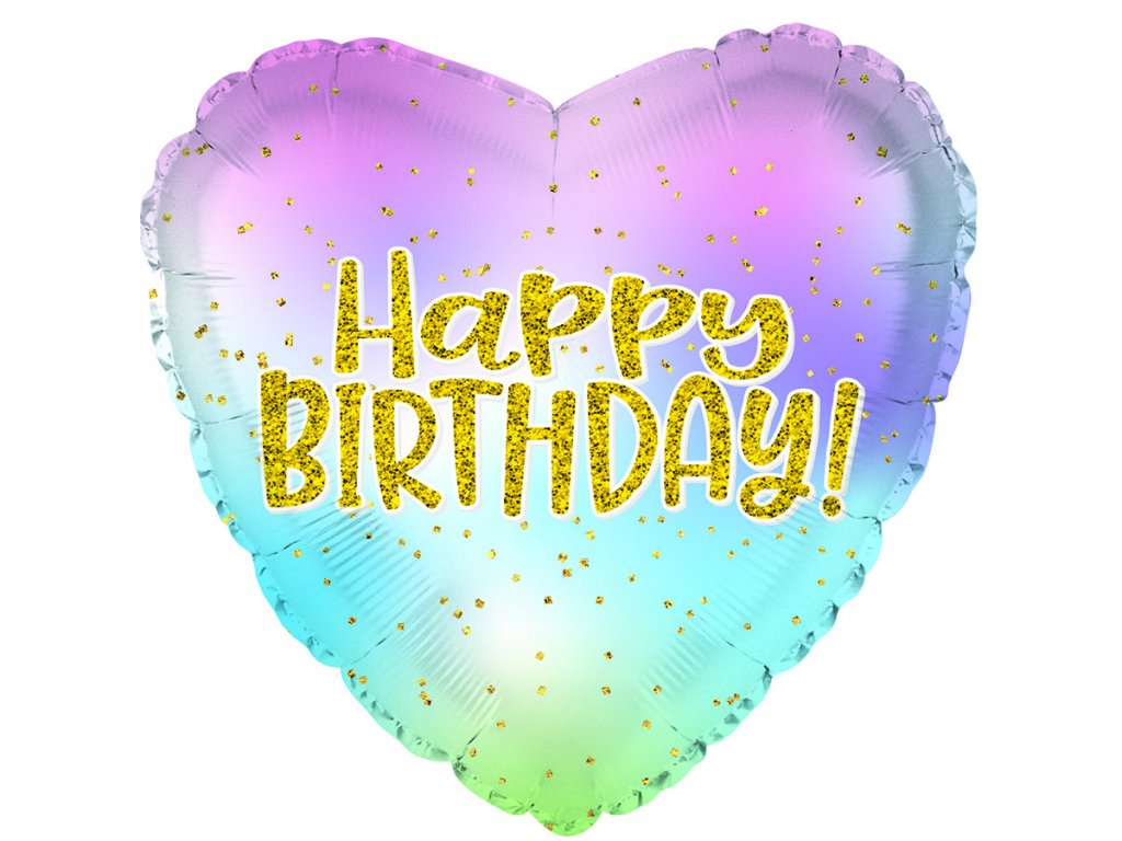 Fóliový balónek Happy Birthday Iridescent Heart - 43 cm