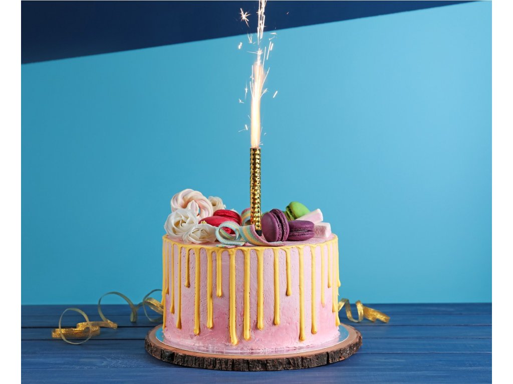 Fontána má ochraný plastový hrot. Pro bezpečné použití zabodněte fontánu hrotem do dortu, na opačném konci zapalte a ihned se vzdalte do vzdálenosti min. 1 m.